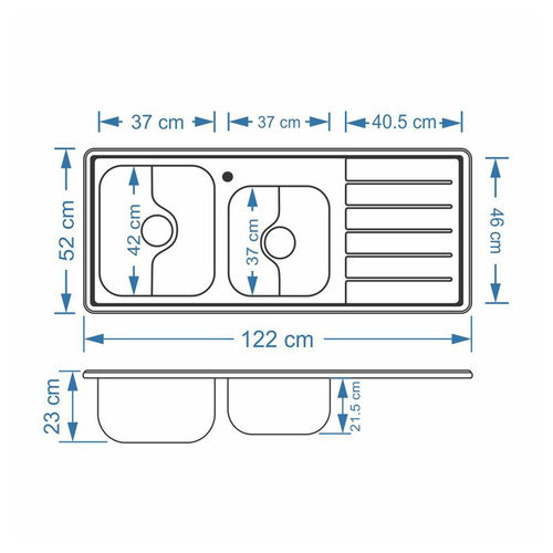 سینک ظرفشویی نگین الماس مدل SA104 روکار از جنس ورق استنلس استیل 304 ضد زنگ و ضد خش با ضخامت 0.8 میلیمتر ساخته شده است. این سینک فانتزی دارای دو لگن با عمق 23 سانتیمتر و ابعاد 60×120 سانتیمتر است که حجم مناسبی را برای شستشوی ظروف فراهم میکند. نصب این سینک به صورت روکار بوده و همراه با لوازم جانبی کامل از جمله سیفون و زیرآب فانتزی بزرگ عرضه میشود.